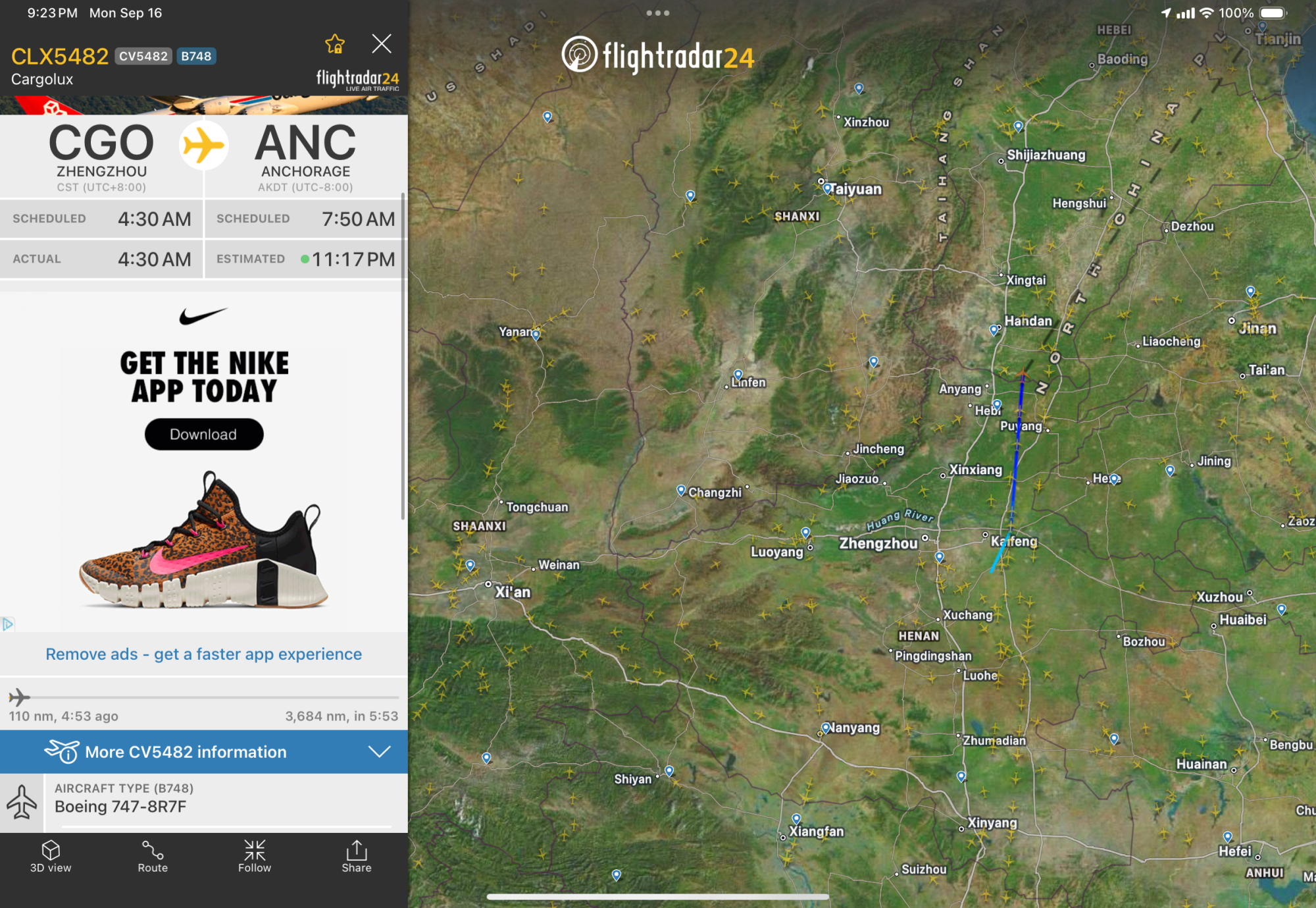 Strange how flight aware and flightradar24 disagree with each other probably because china doesn’t use standard radar@sean02 found it. It did leave CGO as we expected. Actually the Estimate Arrival in ANC is about a match for the delay. It is back on Flightaware: https://www.flightaware.com/live/flight/CLX5482/history/20240917/0133Z