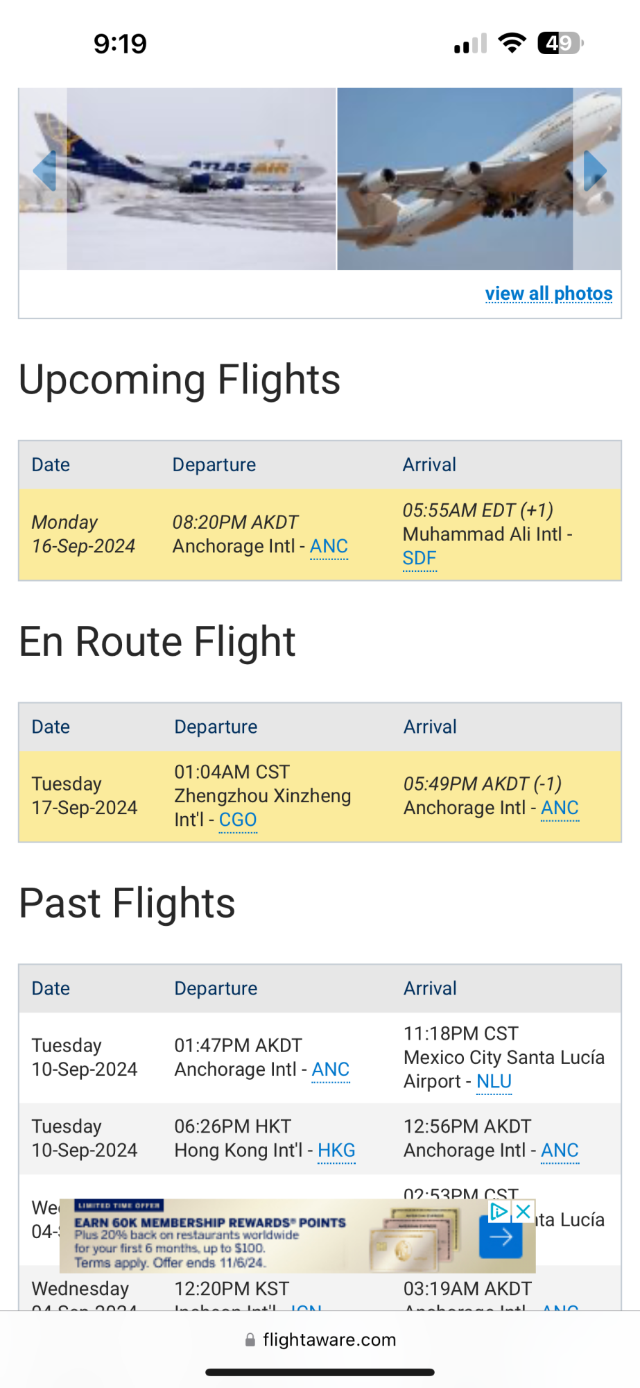 @sean02 found it. It did leave CGO as we expected. Actually the Estimate Arrival in ANC is about a match for the delay. It is back on Flightaware: https://www.flightaware.com/live/flight/CLX5482/history/20240917/0133ZNo, 5482