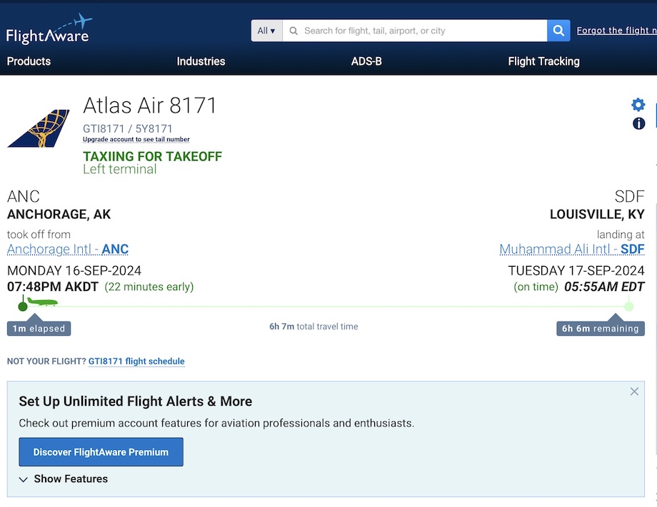 No https://www.flightradar24.com/GTI8171/3722c5edWe looking at UPS197 for wave 1? Scheduled to depart Anchorage to Louisville at 11:23PM.