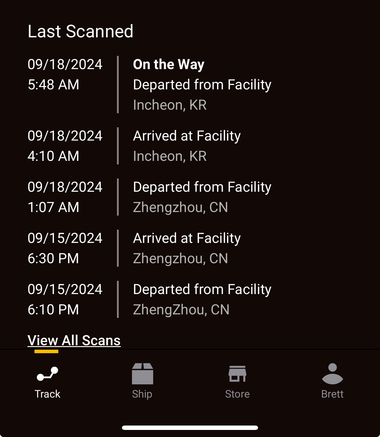 Same here! UPS 175!I’m on UPS 175 with you! Same exact departure scan