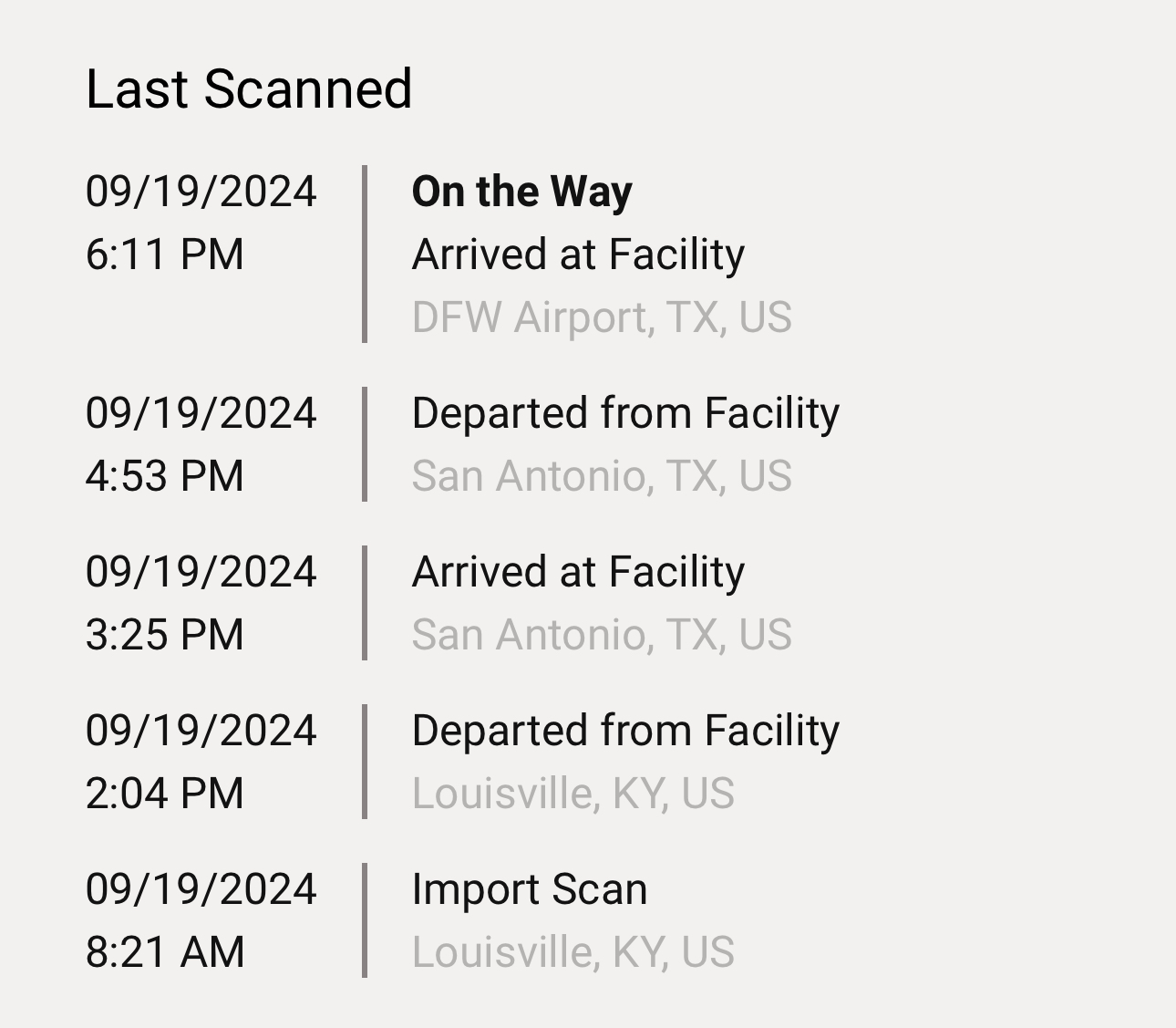 Yep, no update to this point.Anyone else’s order still sitting in Louisville?
