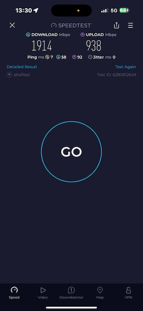 This is my 16PM on an Ethernet cable. I had done a previous wifi 7 speed test, but failed to screenshot that one, but it was symmetrical with 1900+ Mbps! Blew me away!