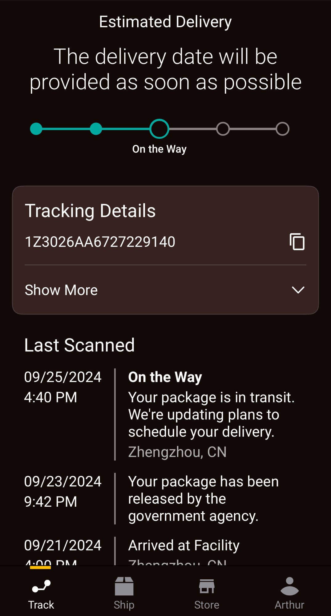 I can’t believe the phone is in china for like 5 days trying to clear some customs. Meanwhile the trade in kit is being rushed 2 day air. Make it make sense.No there are 2 different tracking number in the 3 screenshots from @AeroSatan. The phone is in China or maybe on a flight east and the second delivery is a return-kit from Indiana for delivery today.