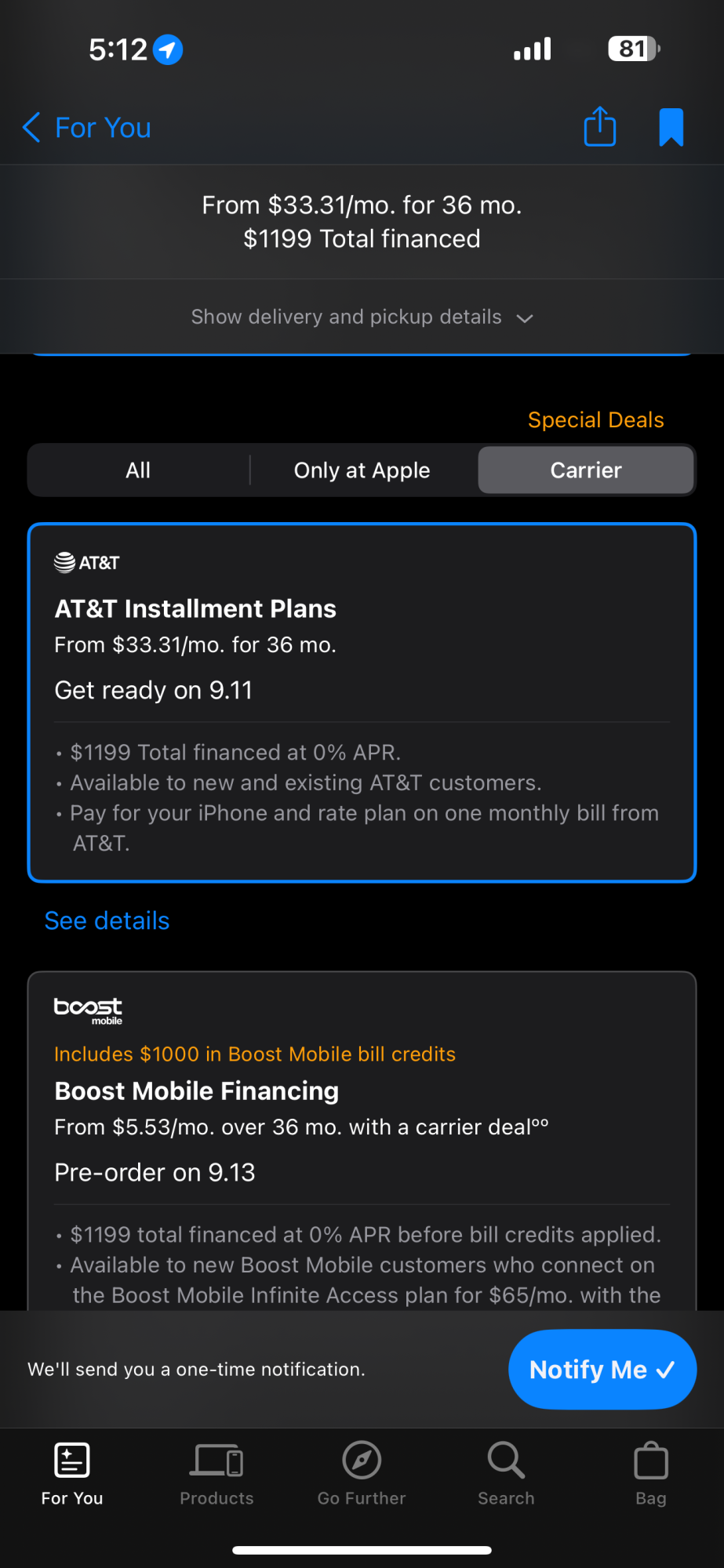 Wow, thank you for the info. So I wonder if you’re currently on a loan, can I cancel it?Just spoke with Apple Sales support, who directed me to Citizens Bank Support - they said unless you're a T-Mobile, AT&T, Verizon, or Boost customer, you are not eligible to participate in the iUp program or even finance with Apple. You have to sign into your account for it to validate on pre-order. Super disappointing.