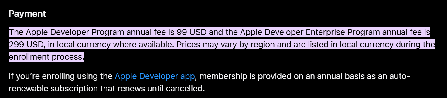 Its not. They are charging recurring fee for things that is already part of the cost of doing business which is their right. If you want developers to make software for you, you need to provide and SDK and APIs to use.$99 per year is an outstanding bargain for what's offered.
