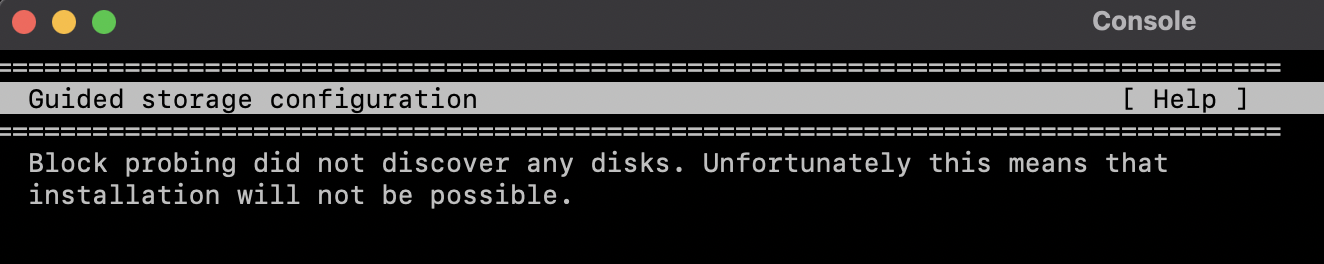But when I choose default network interface, etc, it gets stuck setting up the disk. Should I be using a different ISO? I've installed a lot of linux VMs before, but never a hypervisor like this. Where is the disk created?