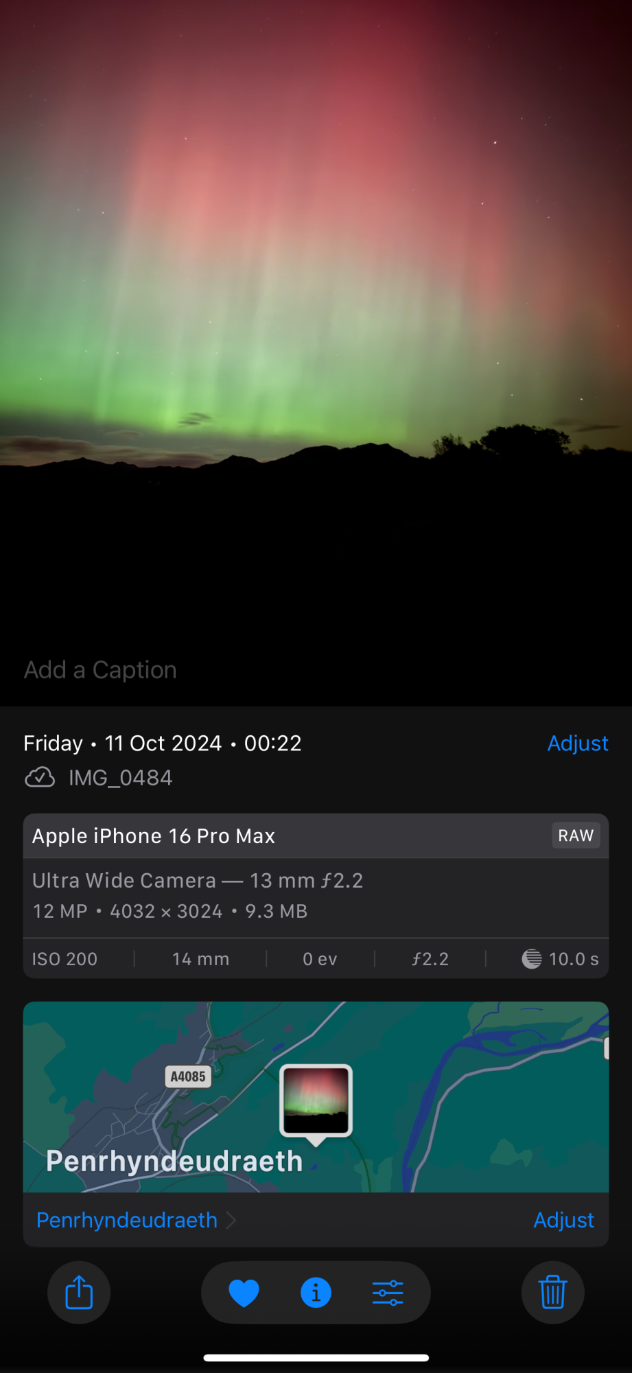 There are circles dead-center in the images each time on long exposure shots taken in ProRAW (or so I thought only ProRAW, I just checked and ONE I shot in standard HEIC and it is still present).