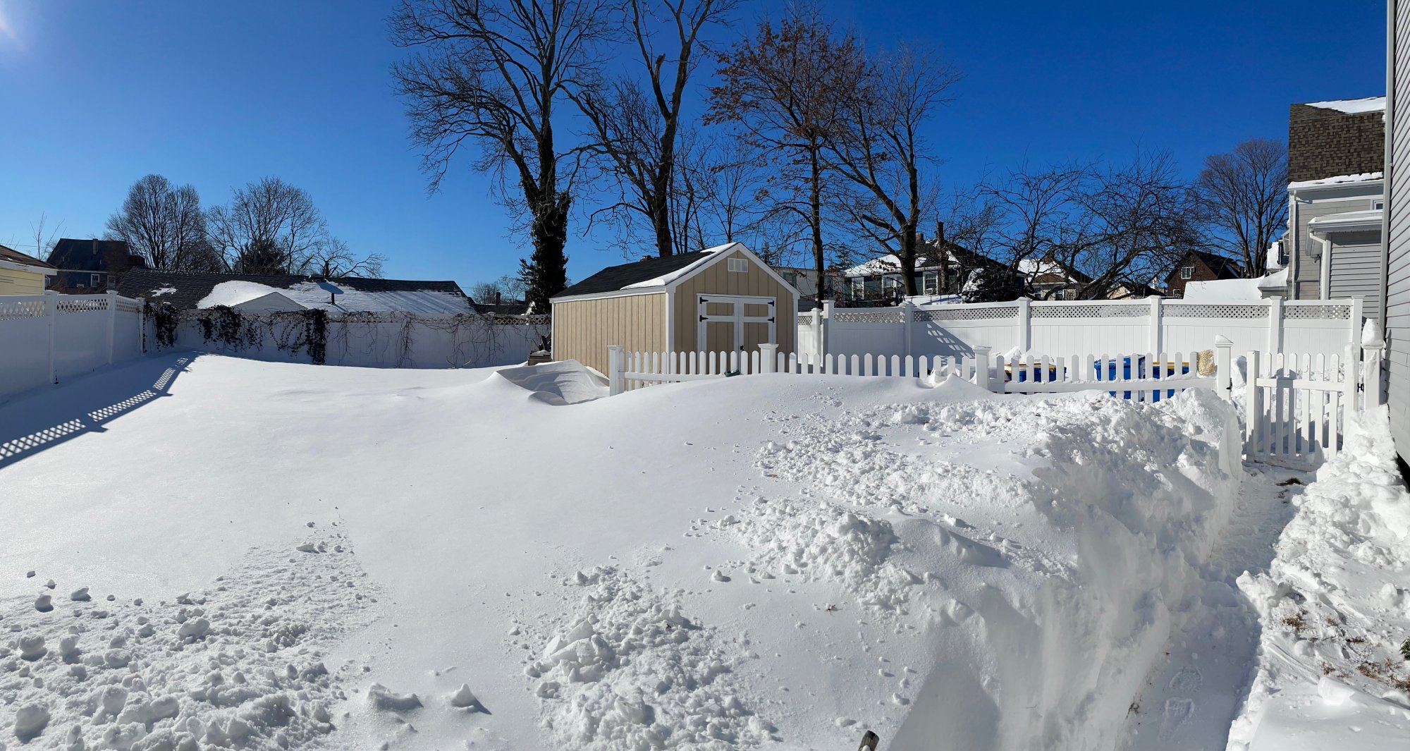 My poor dog , I had to clear a path, for the back, as I mentioned there's a solid 3 feet of snow back there and that's just way too deep.