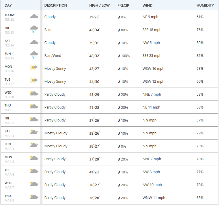 Normal for this time of year for our area. It goes up to 40-45 when you drive into town. This last week has been the only real winter weather we've had this year. Cold, windy and very low moisture. The lowest I've ever seen it go has been 32 several years back. It's a welcome change from the mid to high 80s we had several weeks ago, and the warm November and December.Hmm. Seems misplaced for where you hang out. Welcome to the "huh?" club.