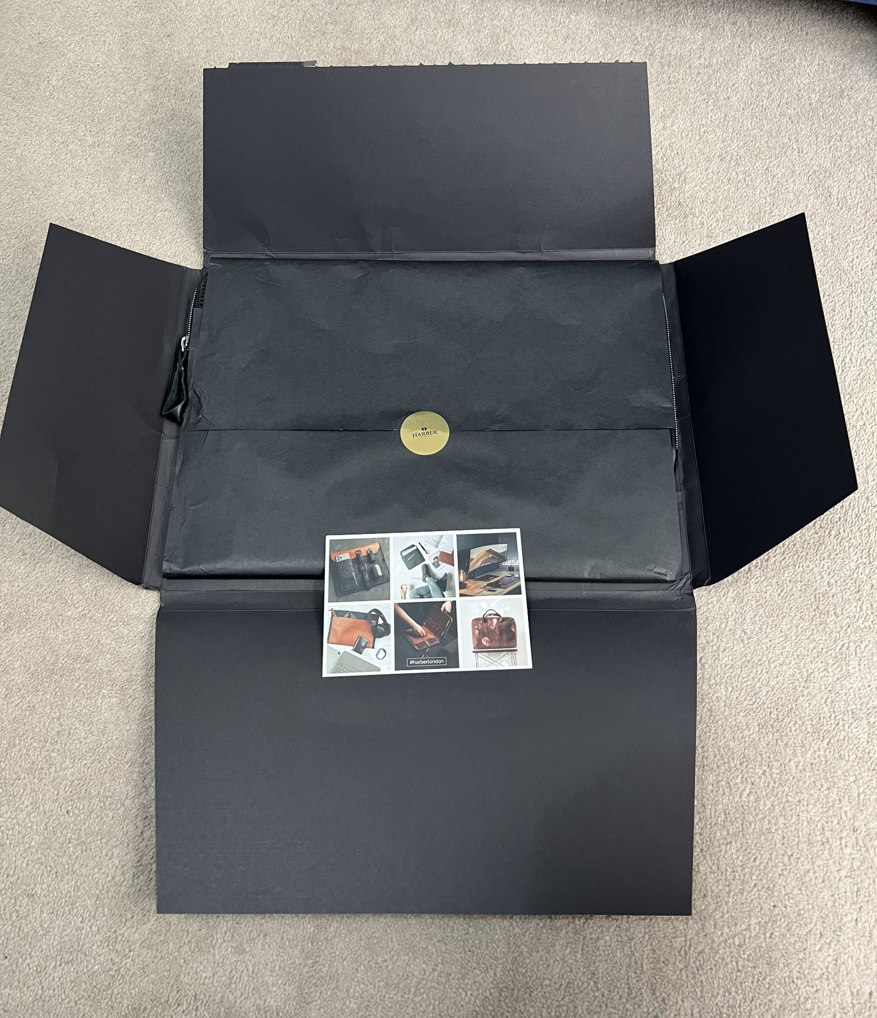 My Harber London Deep Brown leather sleeve arrived via FedEx this morning having been dispatched from Elche (near Valencia) Spain just yesterday afternoon. I pre-ordered 6 days ago and expected a 14 day wait.