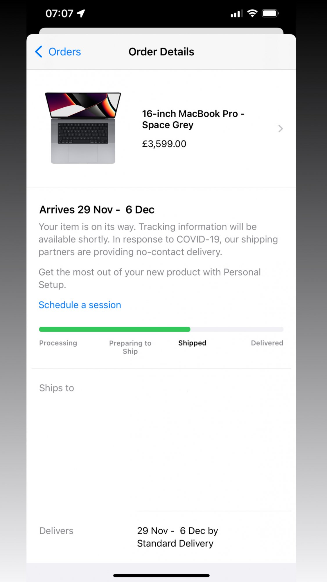 Order status has changed from 'Arriving 25th Nov' to 'Arriving Soon'