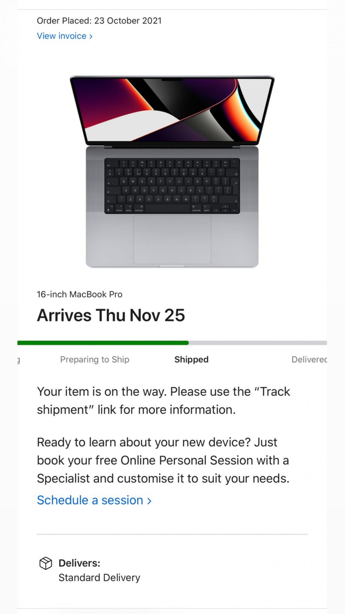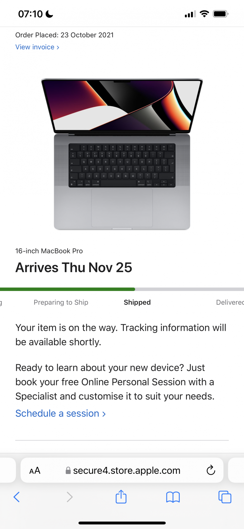 Also the Apple Store order page says to 'use the "Track Shipment" link for more information' but there isn't a link anywhere that I can see?![]()