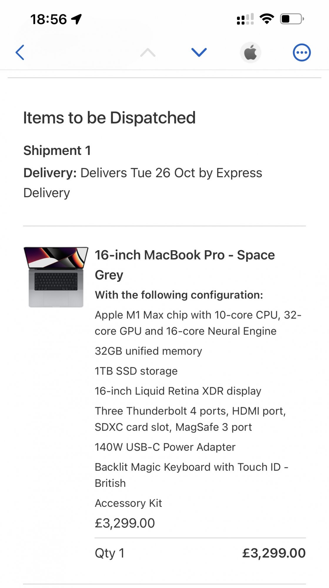 Same as me, but added 2TB, so estimated delivery Oct 29 - Nov 2. Don’t mind waiting a few more days…![]()