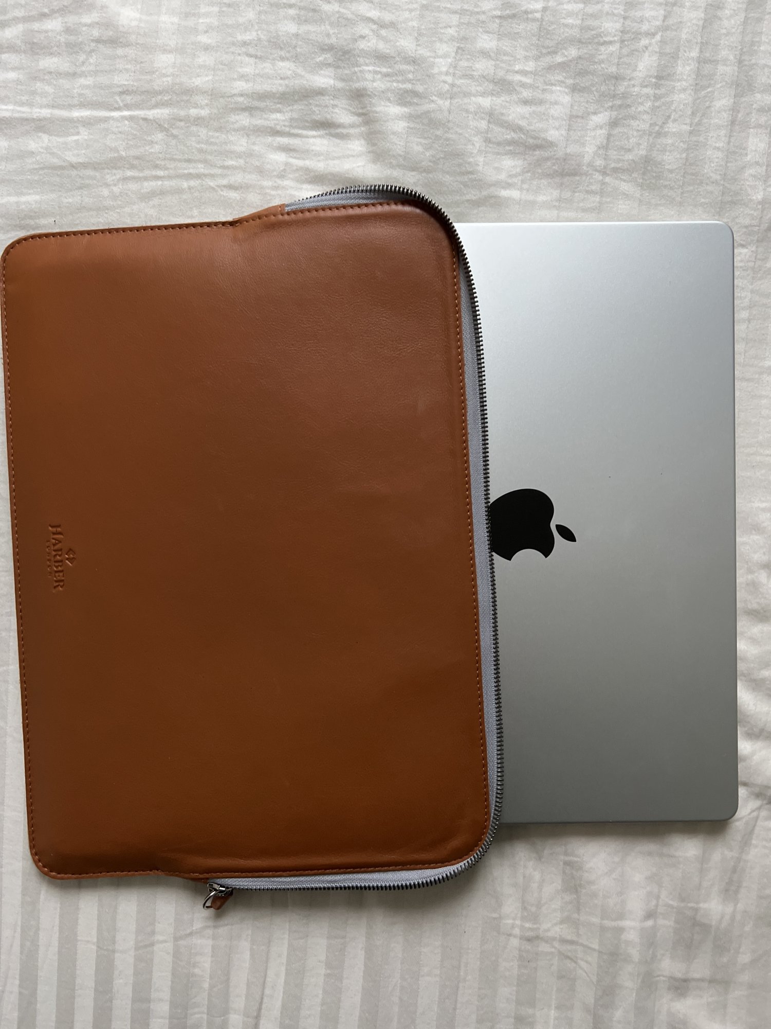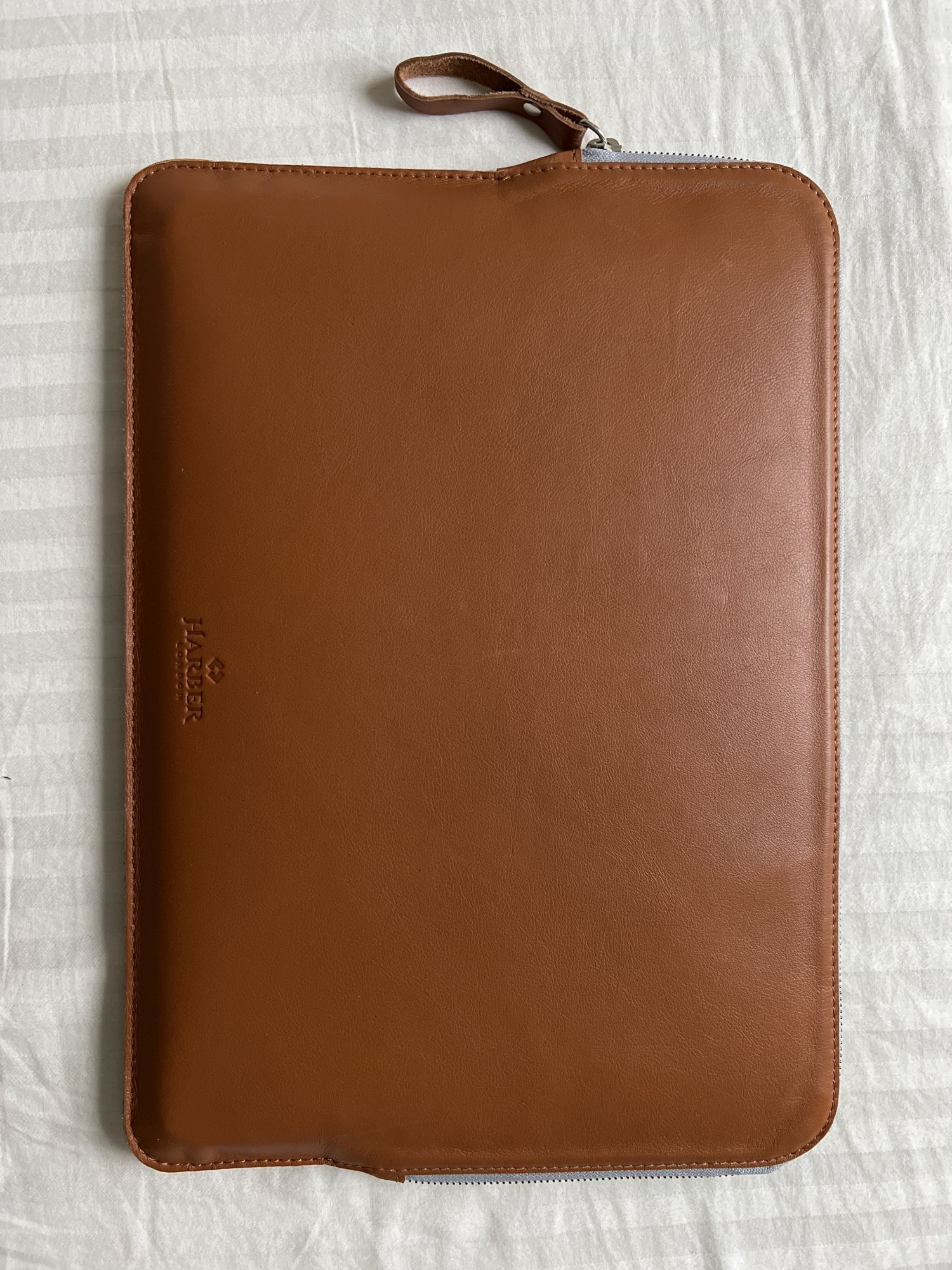 Just pre-ordered the dark brown leather sleeve from Harber London using the 15% discount code HLDCODE. That makes it £58.65 including shipping, pretty good value I'd say. Delivery is about 2 weeks apparently.
