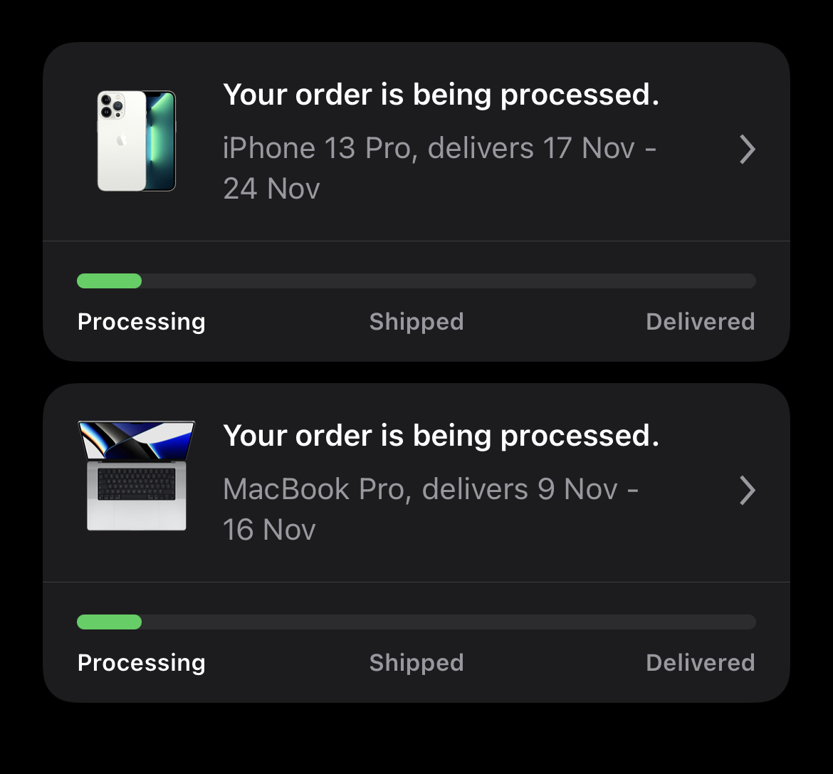 I think mine was 4/5 days until it moved to PFD, then it was another couple of days until dispatch.My credit-card has just been billed for a 19th - 26th Nov MBP Max.
