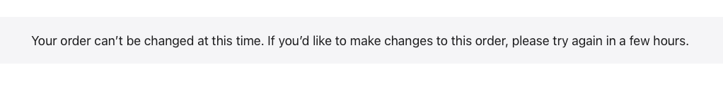 Same for me on the Apple Store appThis sign has just popped up on my order page which is a bit odd as I can't change anything any way as its already preparing to ship...
