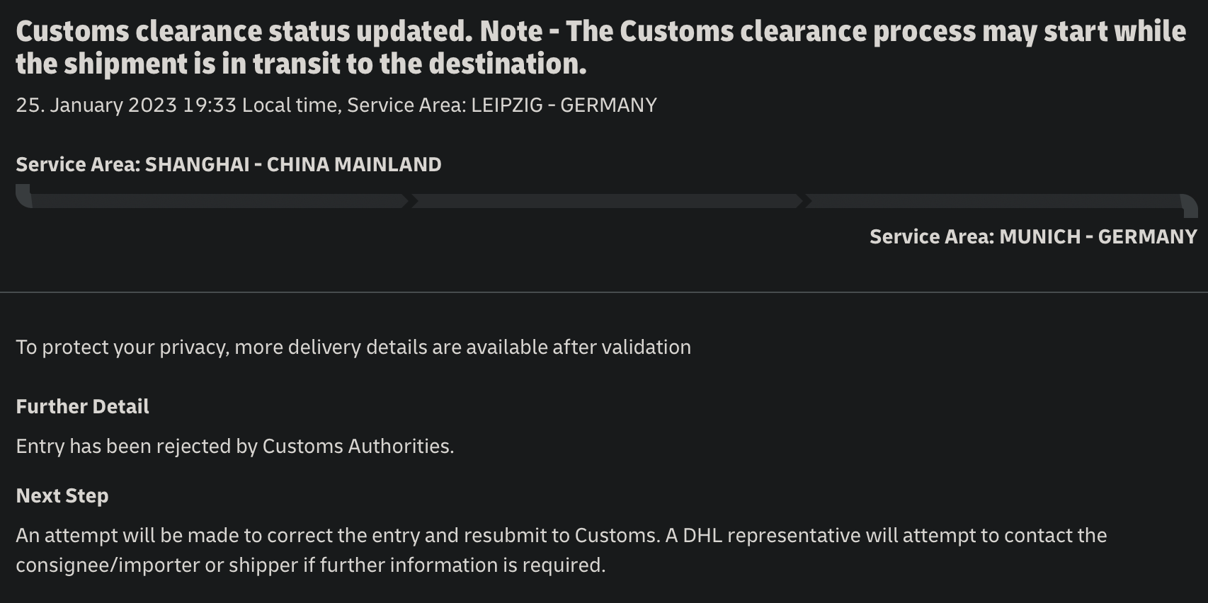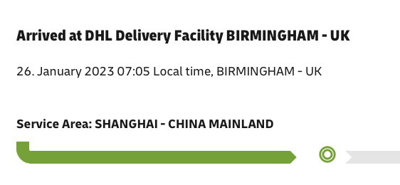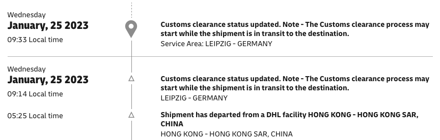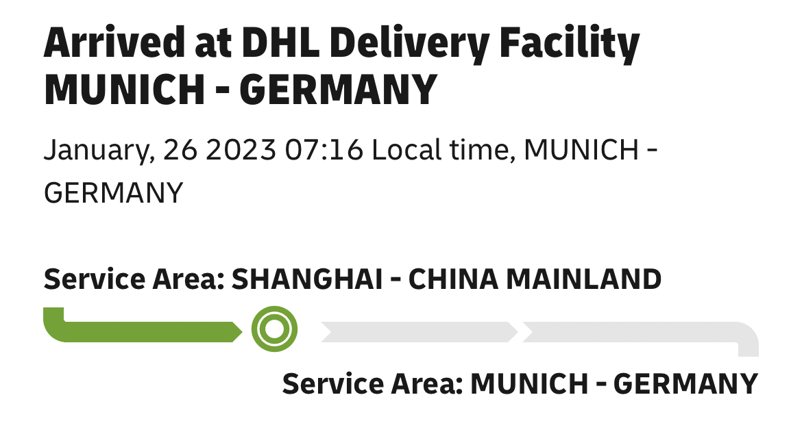 It still just arrived in Leipzig thoughMine is shipping to The Netherlands (Apple says January 27) with DHL Express. Unfortunately no movement here since it departed from Hong Kong: