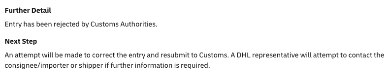 It seems like that the entry has been rejected by Customs: