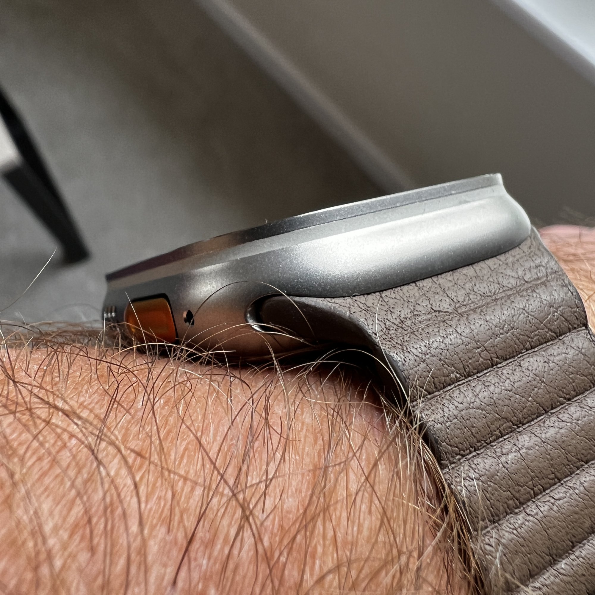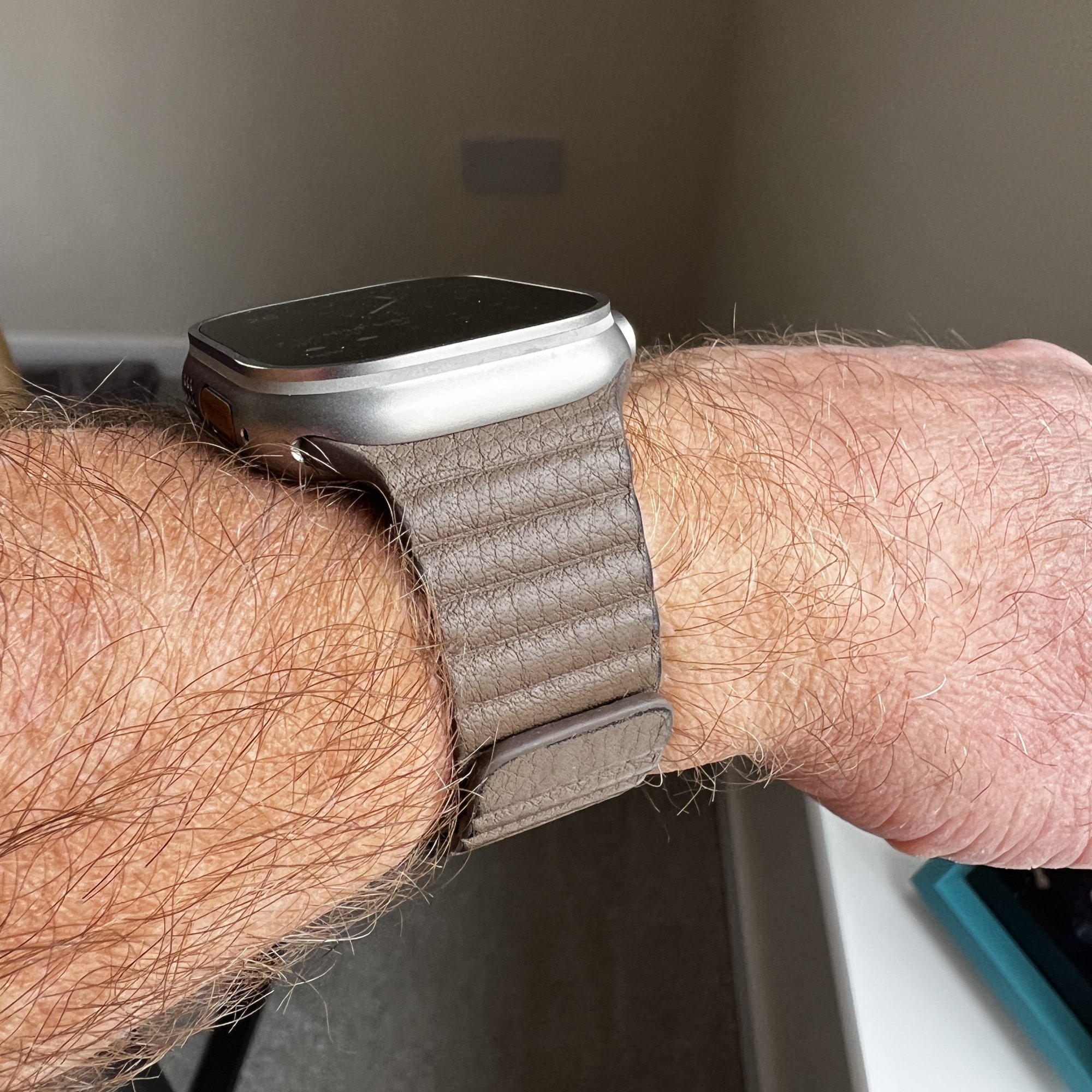 Tried out my 7 year old leather magnetic strap that I bought for my series 1 in 2015 - almost fits, there is a slight gap where the band slots into the watch