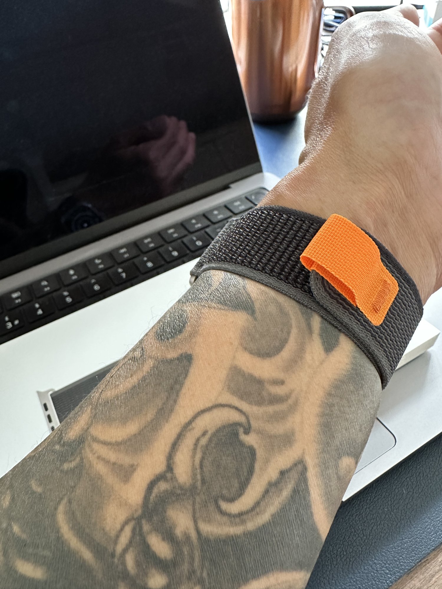 Awesome, how far round does the orange tab go? My main worry with the M/L was it would be nearly touching the watch once fastened.Just picked up.View attachment 2088797View attachment 2088798