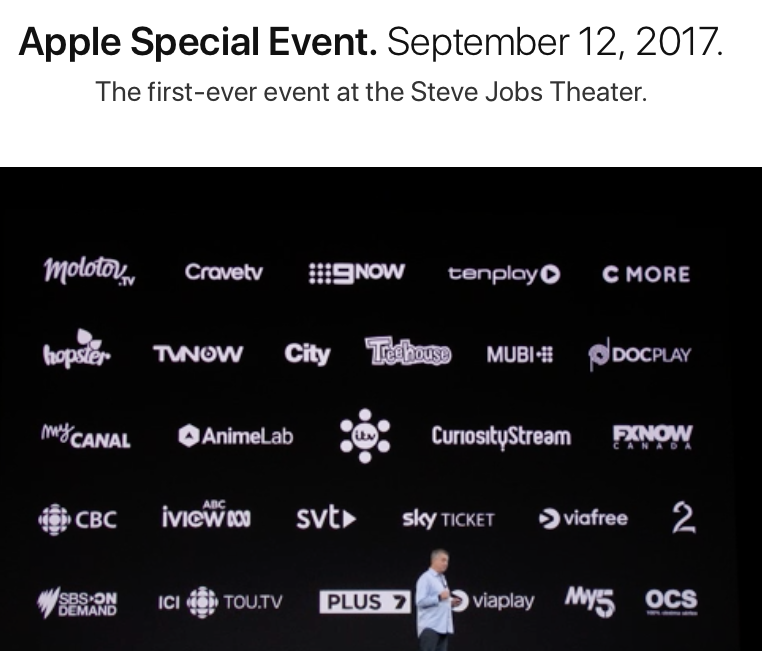 ITV was in slide at Apple event, the slide showing networks coming to TV app