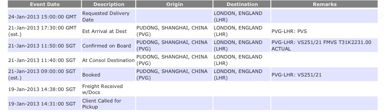 Shanghai, China 01/21/2013 8:57 P.M. Departure Scan