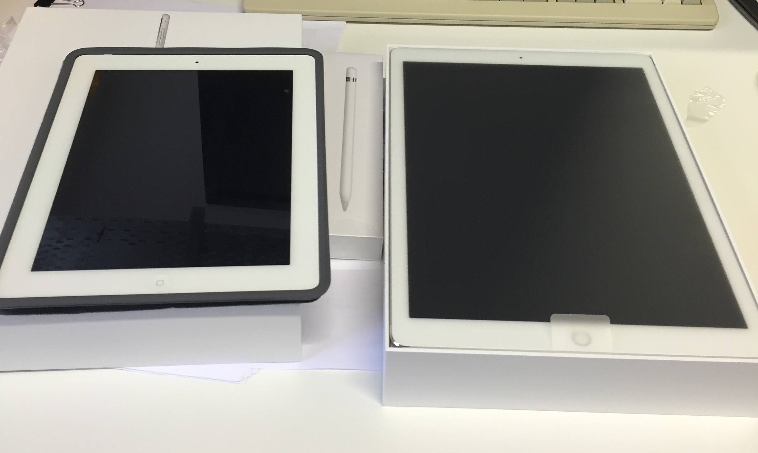 Going on the Apple event presentation I had formed the impression that the pro was going to be larger than it actually has turned out to be. That's not to say that I am disappointed, far from it, I'm coming from the last of the pre-air iPads which I find is still perfectly usable even with ios9, and holding each device in a different hand the pro is lighter so will still be perfect for evening armchair use (a question raised by a previous poster).