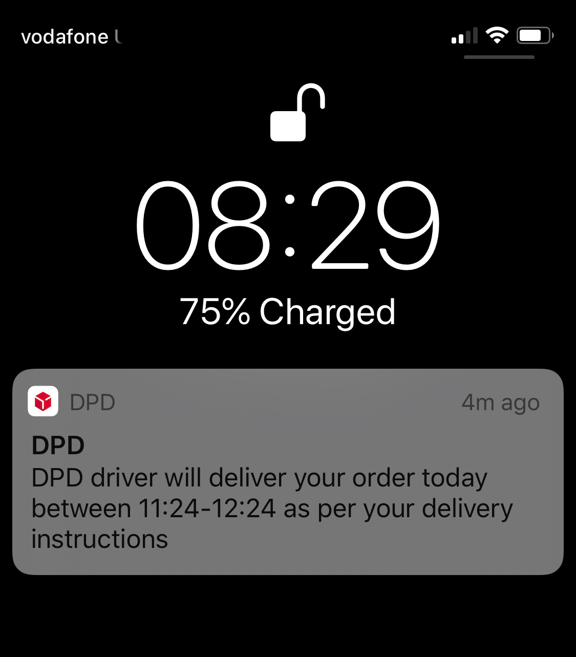 Hoping to get my time slot soon then!Middleton DPD on the move. 11:27 - 12:27 delivery.