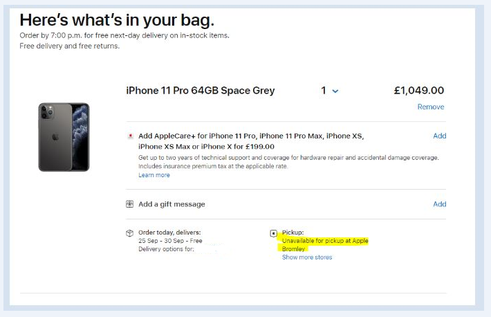 I upgraded to an iPhone 11 Pro 256GB Gold over livechat and was told at the eleventh hour delivery would be 1st October. My advisor even informed me that I was the first customer to upgrade today, so it seems ludicrous that their first upgrade wouldn’t get launch day delivery. They wouldn’t relent on this, though, despite my putting that to them. They said they had a 256GB Gold 11 Pro Max available 20th September but wouldn’t do me it at the same price, so I agreed to keep the original order.
