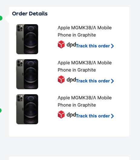 I ordered with them on the 17th with an original delivery date of the 23rd and was told by phone yesterday my order is delayed until next week. Despite that, DPD tracking links come and go and the number of phones I'm apparently receiving range from 1-3. According to their tracking page I currently have two phones arriving, one apparently today. No tracking links for either. I think their systems have imploded.