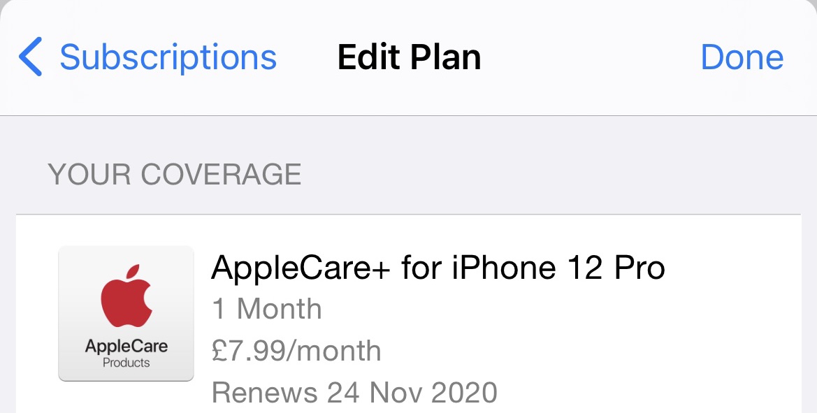 iPhone settings, general, about, scroll down to AppleCare and sign up. All the way through the check out it states £9.99 but then on the final screen before taking payment it said £7.99.