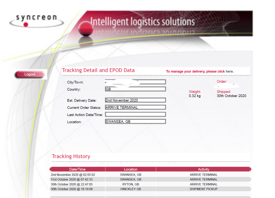 I found the Syncreon page pretty poor but there was a link from that to DHL's tracker.Anyone know how to get tracking information? My order just says syncreon.