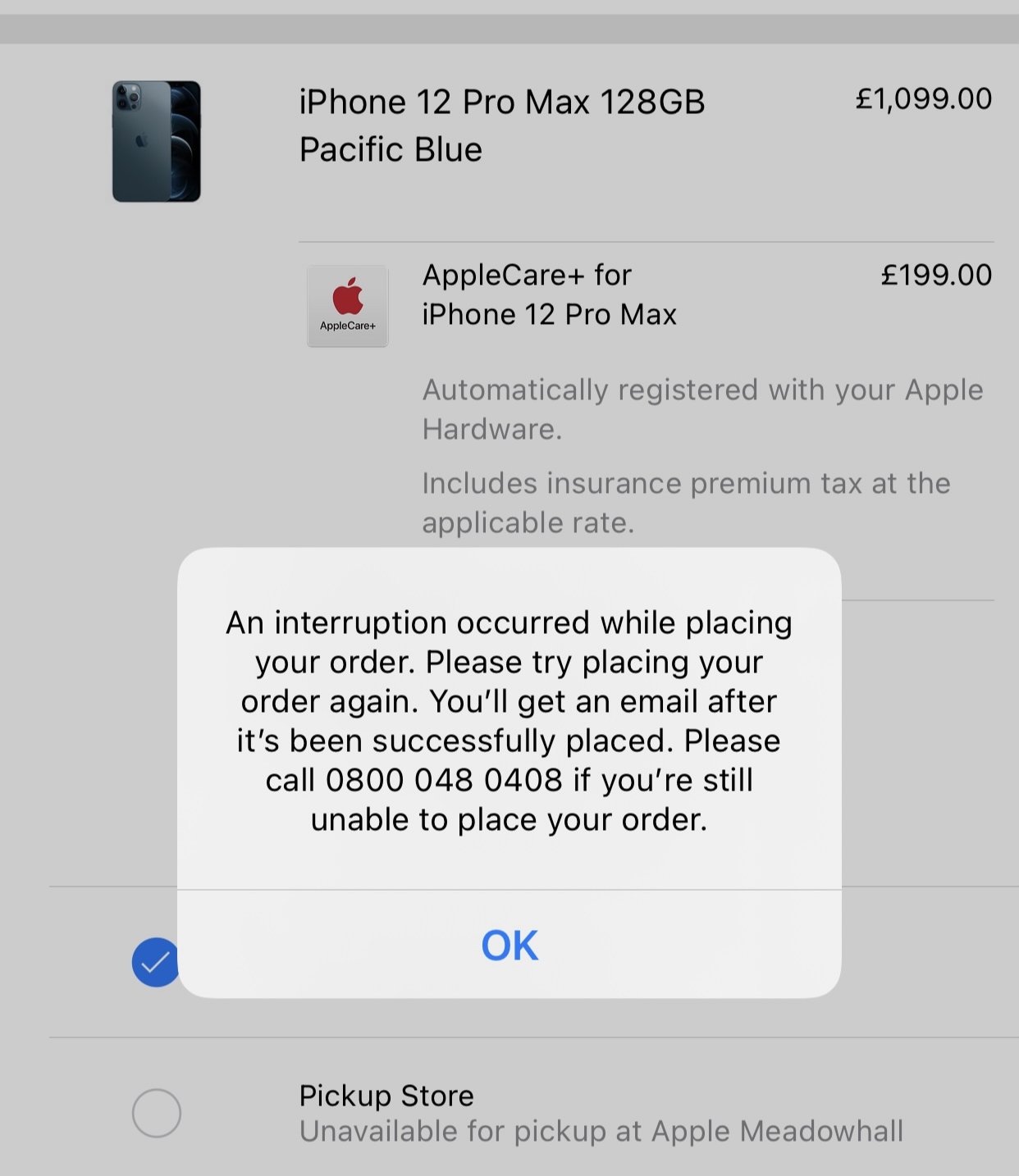 I had the same and it wont go away.. tried from ipad and phone. then went to desktop and tried order- but now showing order on hold.View attachment 1395614Absolutely furious about this. Shipping dates slipped for the PB so I’ve ordered outright for the Silver 128GB for launch day delivery.