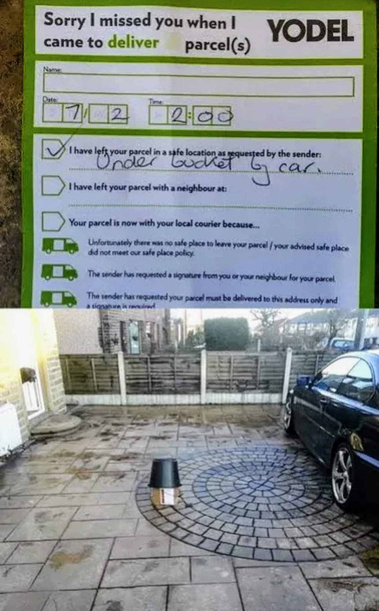 .....at least the driver waterproofed the parcel by placing under the bucket!!!!!!!!!That delivery wasn't not mine but high on the Telegraph's list of worst ever deliveries!