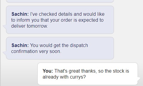 I still feel positive. Currys have delivered for me before (I know they are far from perfect, but I will keep the hope!)...