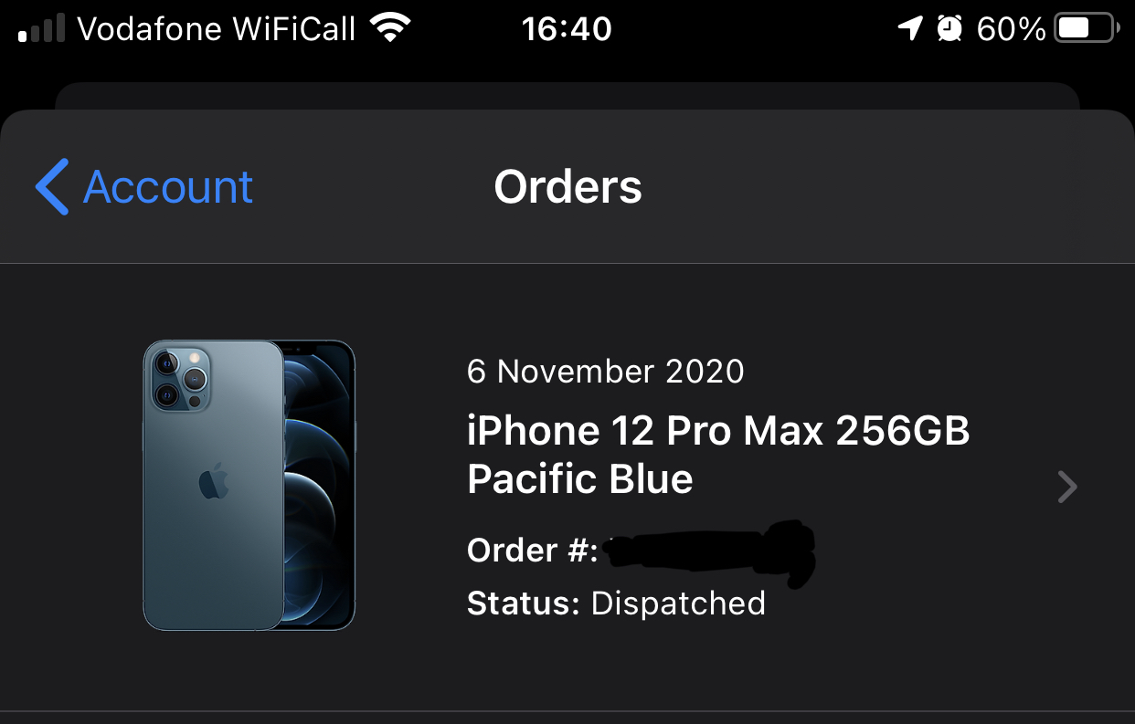 Just checked. When I ordered the 12 (on the day before release) the despatch email was timed at 9.49pmI ordered a 12 Pro Max from giffgaff this morning. Any idea when I can expect a despatch email based on your experience? I have a feeling they send out quite late.