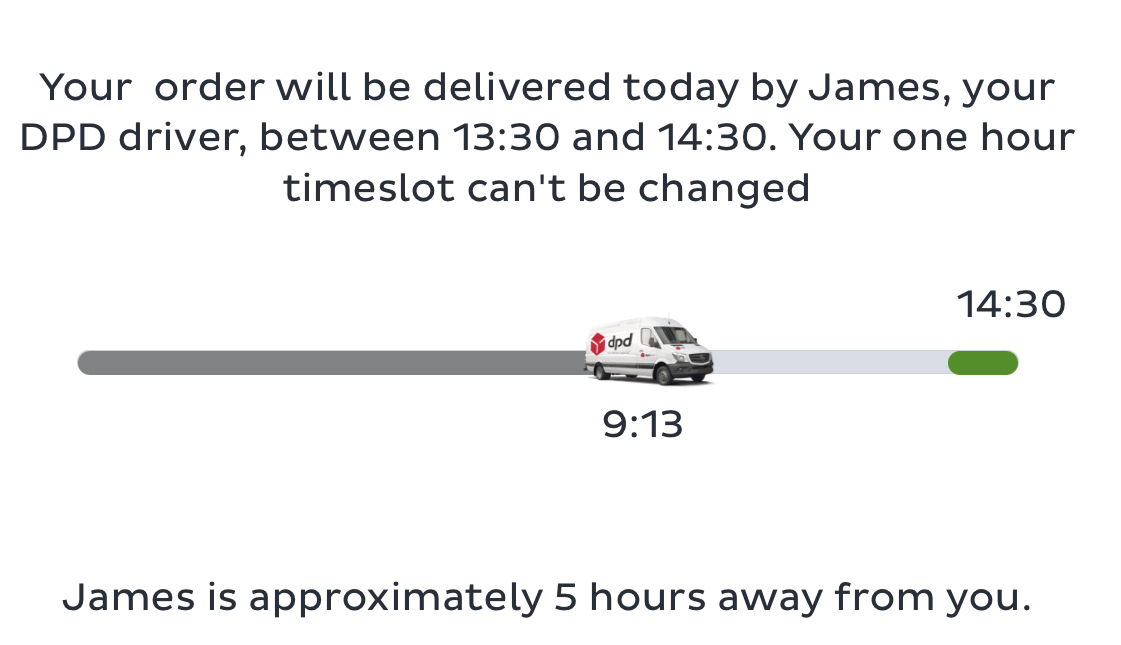 Disappointing, but at least it’s coming. Unless, that is, the driver runs out of time before his shift ends... Only kidding! 😂Your parcel is due to be delivered on Friday 13th November 2020 between 17:02 and 18:02 😥