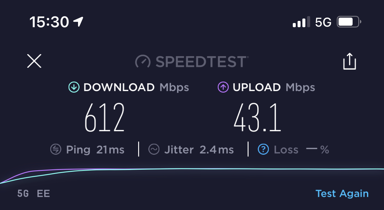 Close - a speed test on my iPhone 12 mini on EE today, just round the corner from the Apple Store GlasgowBest upload speed i have seen to date compared to the likes of EE in particular and Vodafone 🙂