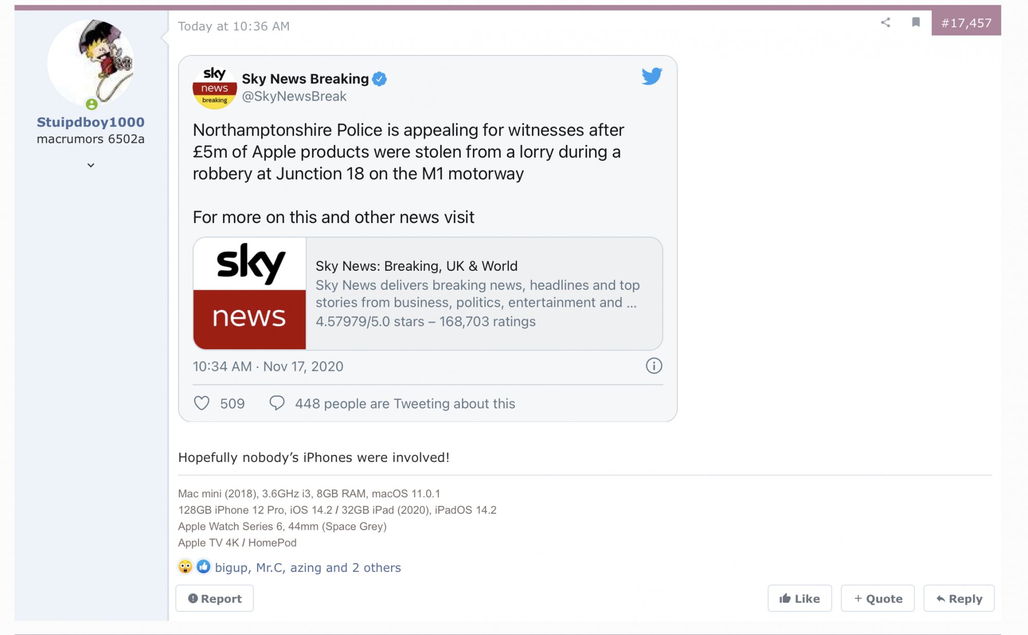 Thieves steal £5million of Apple products from raid on lorry on M1