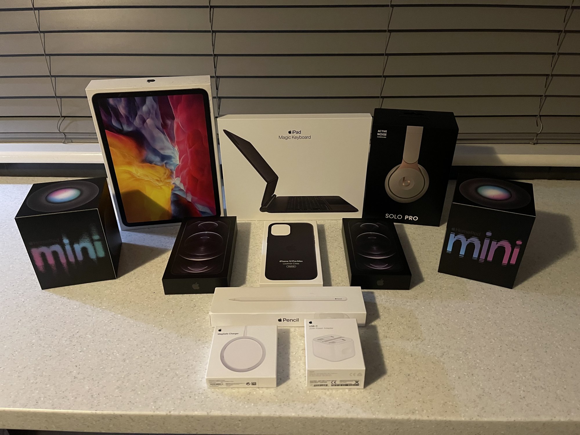 Got my last delivery of Apple goodness through today with the new HomePod Mini's, finally have to put the card away and block Apples website before I bankrupt myself, got all the below not since the start of the year but only since July, Lockdown + Apple gadgets = 9p noddles for Christmas dinner😂