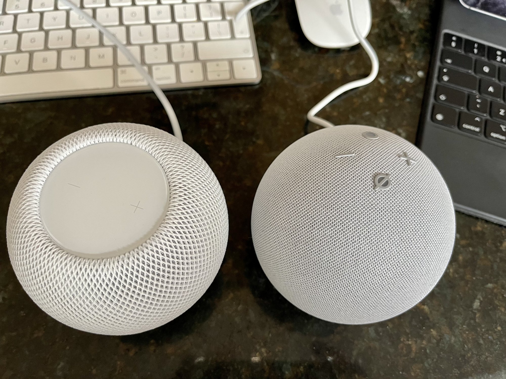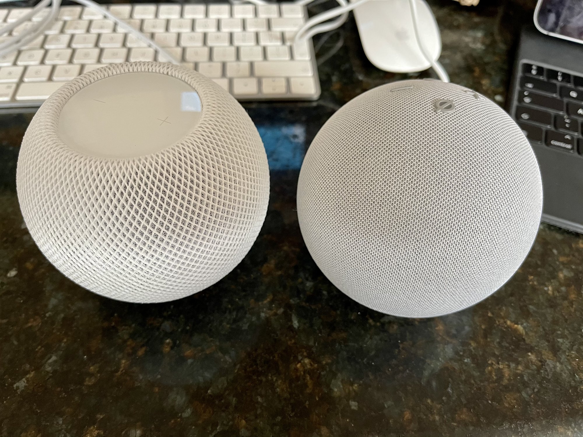 The new Echo 4 Dot arrived, wow what a bargain at £28.99, placed them side by side, the Dot oozes quality and well thought out design, raised buttons for visually impaired, a visual light you can see from any angle, actual function buttons and Aux 3.5, the dust collecting cheap looking plastic top on the HomePod mini which shows fingerprints if you have the black top doesn’t exist on the dot, sound wise the dot is louder and I find it hard to compare sound difference but the mini did sound slightly tinny, at the end of the day these are cheap budget speakers so can’t expect too much, they aren’t going to win any hifi awards, the dot trounces the mini in functionality overall, the mini wins in Apple eco system integration but you are going to be very lonely and miss out on the huge wider outside world connectivity functionality that the Amazon dot offers, it really makes the mini seem archaic with no real understanding or interest in connecting with the bigger world.