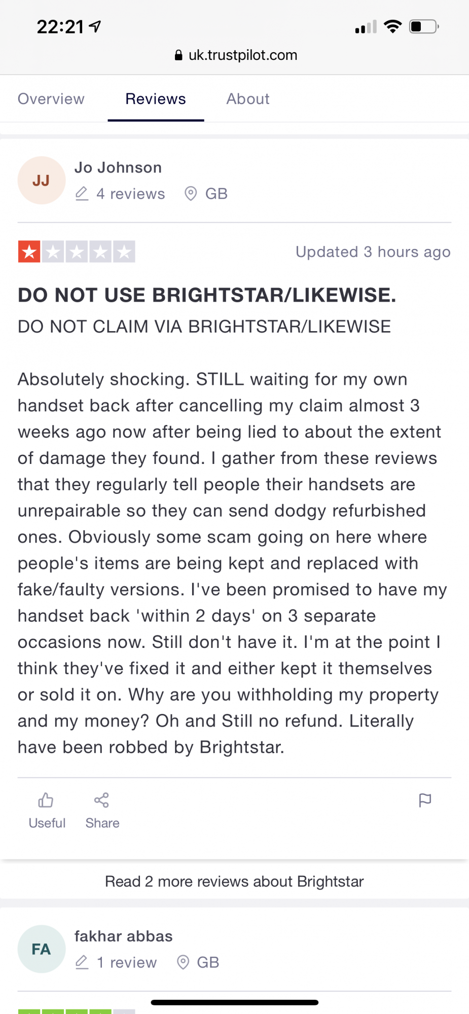 …..that’s just one single bad review you have hand picked from a page of positive reviews, which means nothing. You need to look at the bigger picture - the company has a 4 out of 5 star positive review as a whole!!!