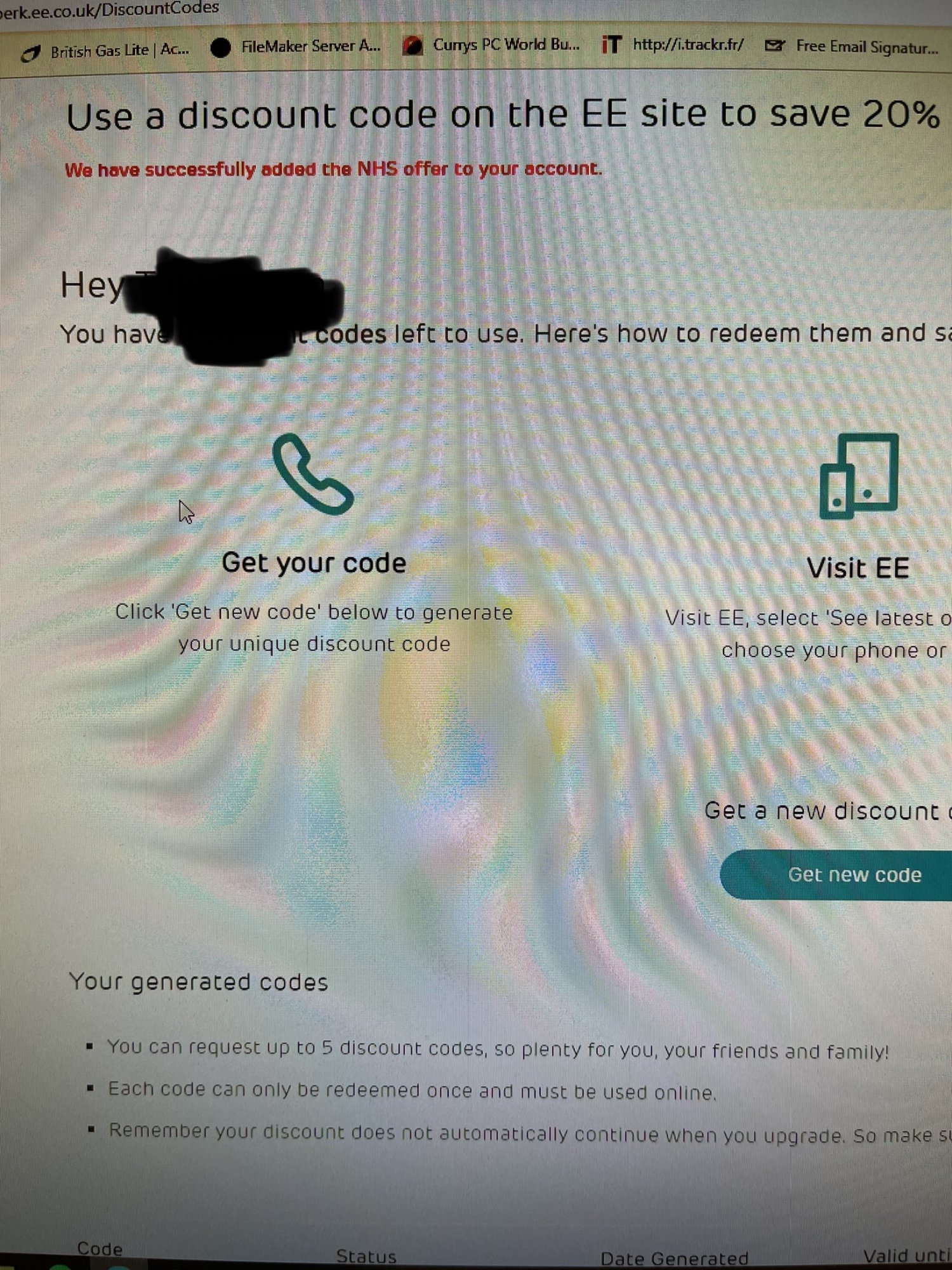 Let me log into EE Perks and check for NHS.Health service discounts you can