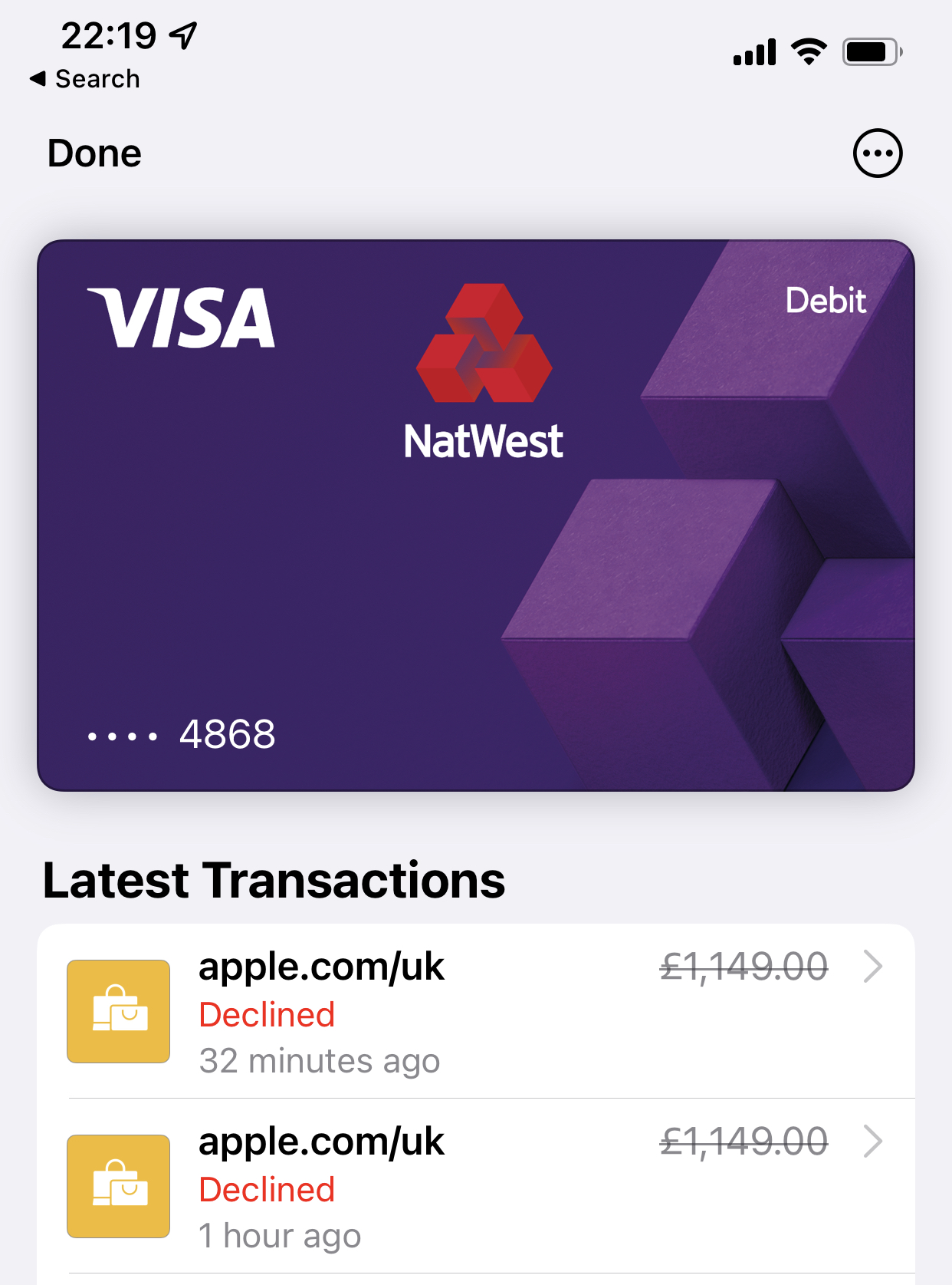 Can you check your order online. Any messages showing alongside your order tracking?I've just checked the wallet app as i used Apple Pay and it's showing that Apple have tried to take the money twice and it's been declined. According to the bank they've not declined anything?!