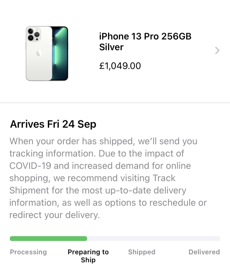 8.30am - first DPD app notifications of delivery but nothing from Apple and no updates on order