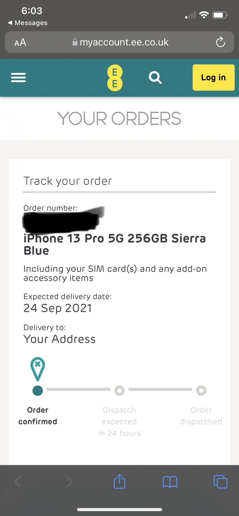 Mine has changed too! Very happy as I ordered the graphite and was told on launch day that it had moved to a 14 day delivery window so there is hope for people in the same position!Mine has changed to “Expected delivery date 24 September 2021” 128gb Sierra Blue 12 Pro for me![]()