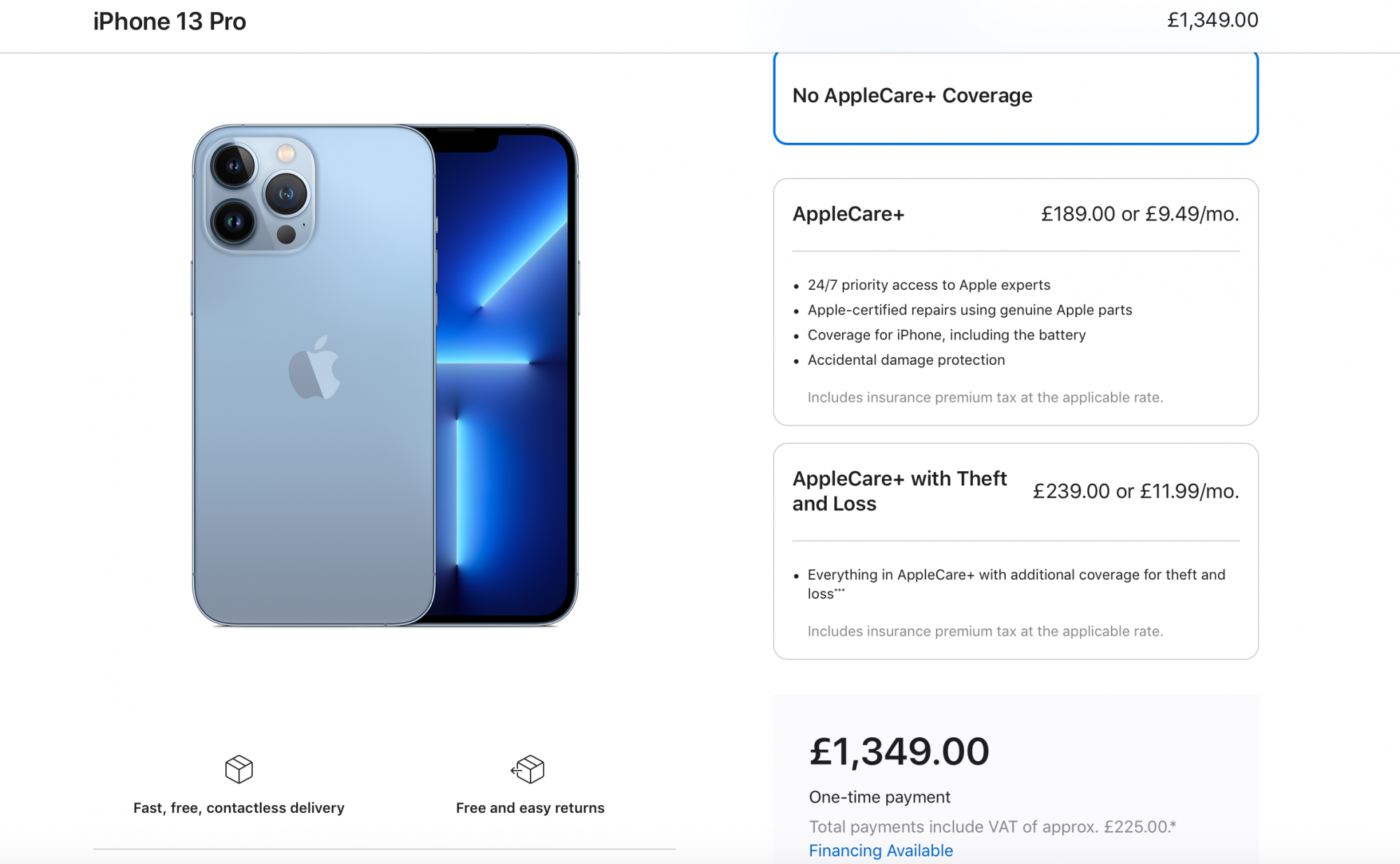 Can someone confirm how much AppleCare+ with Theft and Loss cover is for a 13 Pro Max 512GB - i can't see the price as i dont have a serial number yet