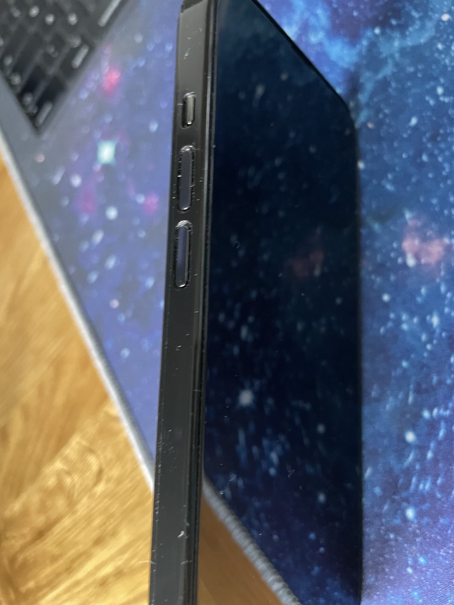 No I have not. I am really confused. Been in house all day jot taken it out. Not dropped it or taken it near liquid. Does edges just start to wear due to holding it? Its the same edge that touches my palm for one handed useHave you scuffed it on something or dropped it?