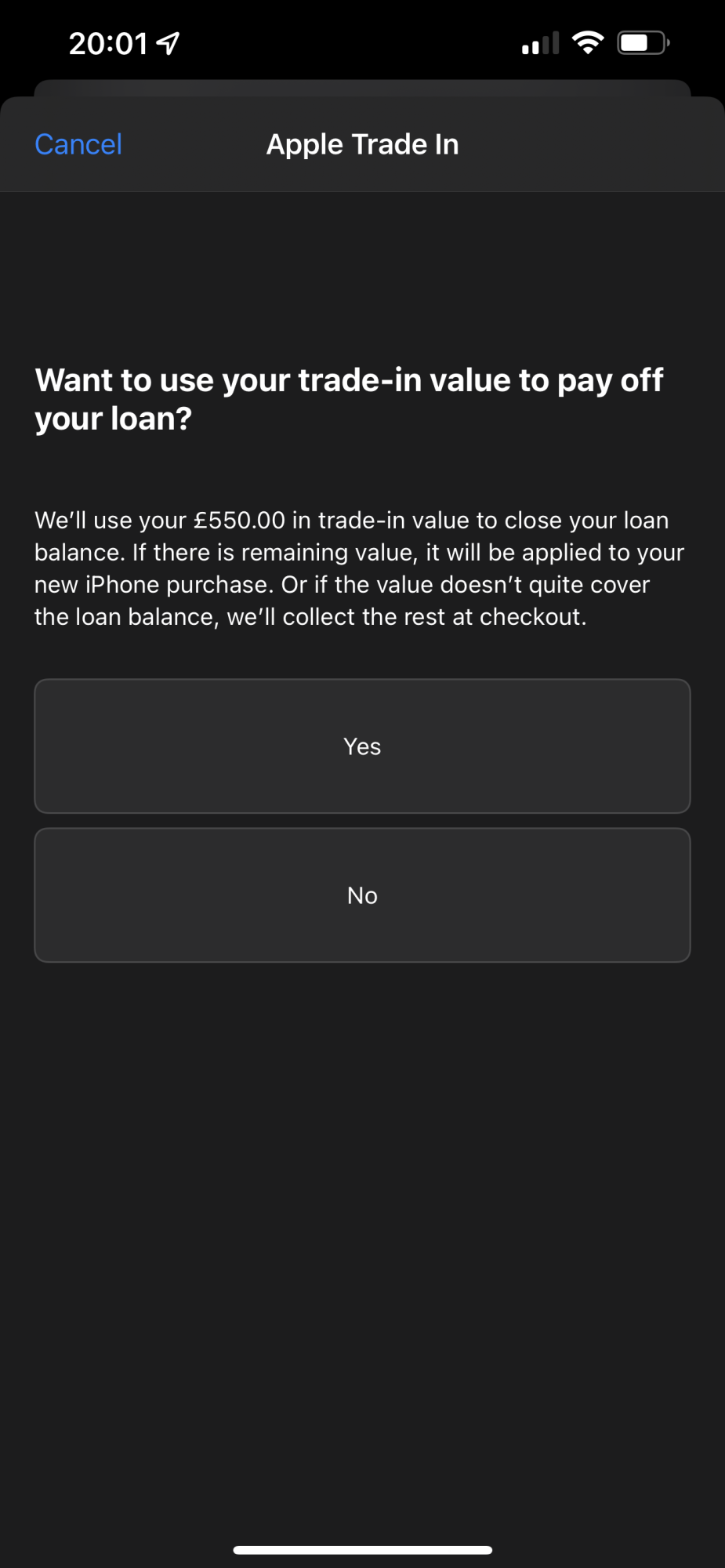 PS - for context, as of 23rd August my remaining loan balance was £568.Looks like Apple’s trade it is not worth it. They are offering me £550 trade in for 128gb 13 PM - which is then used to close off my existing Barclays loan. If there is any remaining credit it’s added to the new iPhone 14 PM balance. But if I sell to MM I get £710 which I’ve locked in. Makes sense to sell and bank the profit from MM