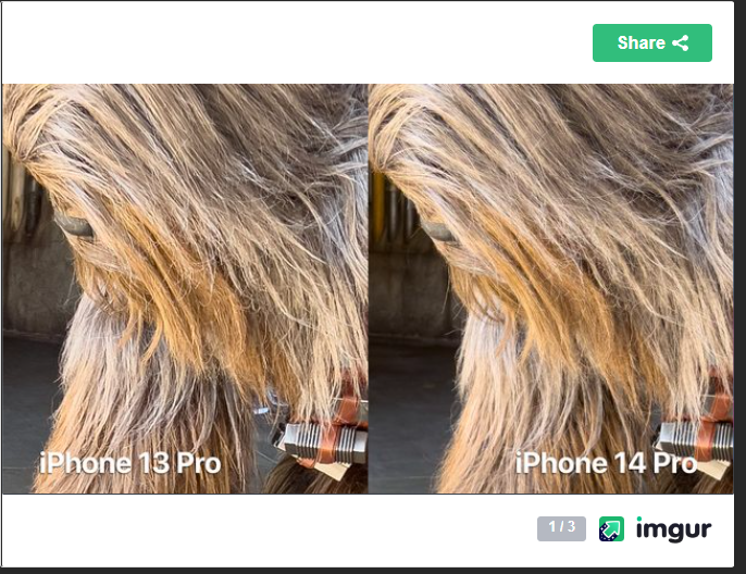 If you open the images on Imgur it's fairly clear that the 13 Pro has less detail and is sharpening quite aggressively. There's a lot more detail in the 14 Pro images.Look at your image :